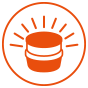 Para encender la baliza, gira la base en la dirección de las agujas del reloj, hasta que la marca naranja apunte a encendido. La baliza se encenderá en el modo de iluminación predeterminado. Para apagarla, gira en la dirección contraria a las agujas del reloj, hasta colocar la marca en el icono OFF.
